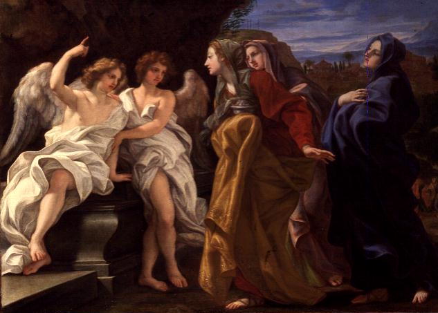 The women arrive at the tomb and find it empty. The stone has been rolled away and an angel tells them that Christ has already risen! (Mat 28:1-8; Luke 24:1-8; John 20:1) |